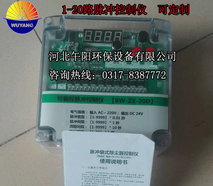 脈沖控制儀是袋式除塵器噴吹清灰系統的主要控制設備,它的輸出信號直接控制電磁脈沖閥,采用壓縮空氣對濾袋循序噴吹清灰,使除塵器的阻力保持在設定范圍內,以_除塵器的處理能力和收塵效果。