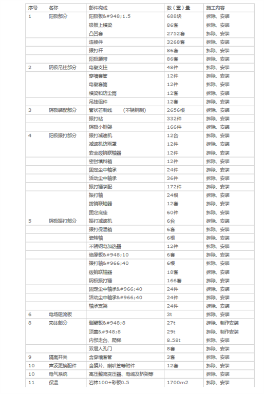 2、除塵工程安裝包括:除塵器本體、高低壓電源及其控制系統的安裝,系統相關設備和裝置的安裝,風管和電、氣、水管線的連接;除塵系統保溫﹑防腐和防雨等。施工單位應制定安裝技術方案。