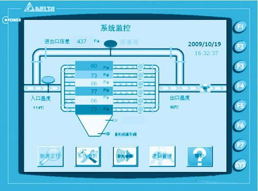組成矩陣形式對輸入輸入點進(jìn)行檢測和控制。通過臺達(dá)觸摸屏來設(shè)定脈沖閥動作寬度和間隔時間以及定時周期,還可以查看各室脈沖閥動作。利用