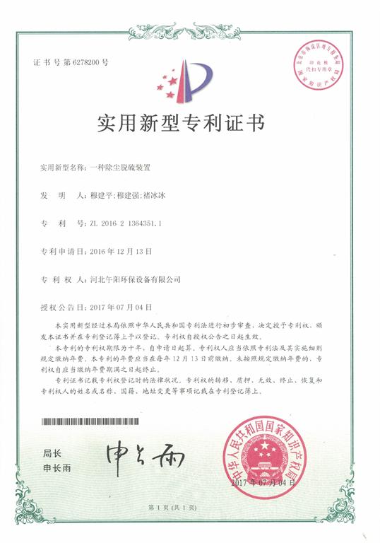 一種除塵脫硫裝置的實用新型_-河北午陽環保設備有限公司