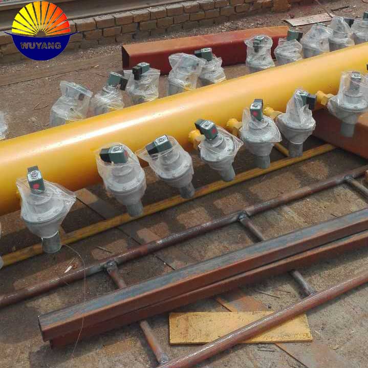 氣源設計中應_供氣回路有調壓閥和油水分離過濾器。同時供氣管道管徑應與流量相匹配,防止壓縮空氣系統壓損太大。除塵器的氣包容積按供氣量和供氣壓力設計,_脈沖閥噴吹一次,氣包壓力降不低于原壓力的30%。例如,壓力為0. 4MPa,噴吹一次后壓降不低于0.28M玲。同時氣包連通檢修閥設計,在氣包上裝氣包壓力表、氣包排污閥、氣包手動檢修閥和各氣包連接PLC的壓力傳感器。對于管式噴吹用的噴吹管,要通過試驗或計算機模擬確定噴吹管上各孔開孔尺寸,噴吹管距花板的距離,噴吹管的固定安裝方式和噴嘴導流方式。選擇脈沖閥時,為確保設備的使用性能和使用壽命,使除塵器能長期_穩定運行,袋式除塵器的脈沖閥_有5年質保期。脈沖閥的噴吹氣量_滿足設計濾袋數量的要求,工作壓力范圍應是足夠大,盡量選用_產品,設計應掌握脈沖閥膜片行程、閥口尺寸、閥門接口尺寸等,以便做到心中有數。同時注意脈沖閥的控制要求,如電控、氣控、防爆等。