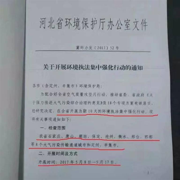 河北省發布消息,為配合好全省空氣質量攻堅月行動,推動省委、省政府《關于強力推進大氣污染綜合治理的意見》及18個專項方案有效落實,經研究決定, 在全省開展為期10天的環境執法集中強化行動, 現將有關事項通知如下——