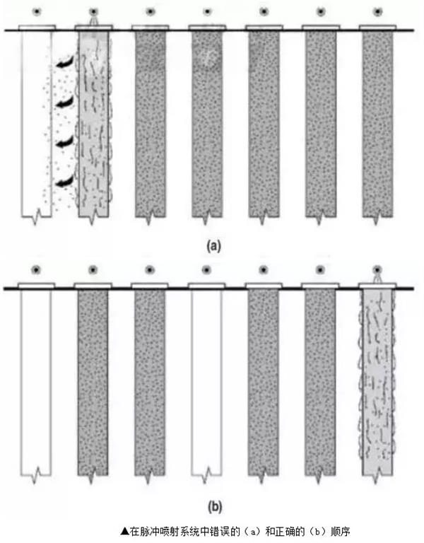 清潔順序可以在減少物料重新夾帶方面發(fā)揮重要作用。在另一行旁邊脈動(dòng)一行(按順序排列)可能會(huì)導(dǎo)致精細(xì)的亞微米材料遷移到已清潔的行。交錯(cuò)排列的脈沖順序可以_濾餅的過濾效果。一個(gè)例子是脈沖行1,然后行4,7,10,13,16,2,5,8,11,14等,直到整個(gè)系統(tǒng)已被清理。