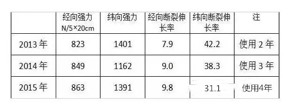 上述表明該電廠濾料經(jīng)向變化很小,且使用4年后強力性能基本沒有下降。